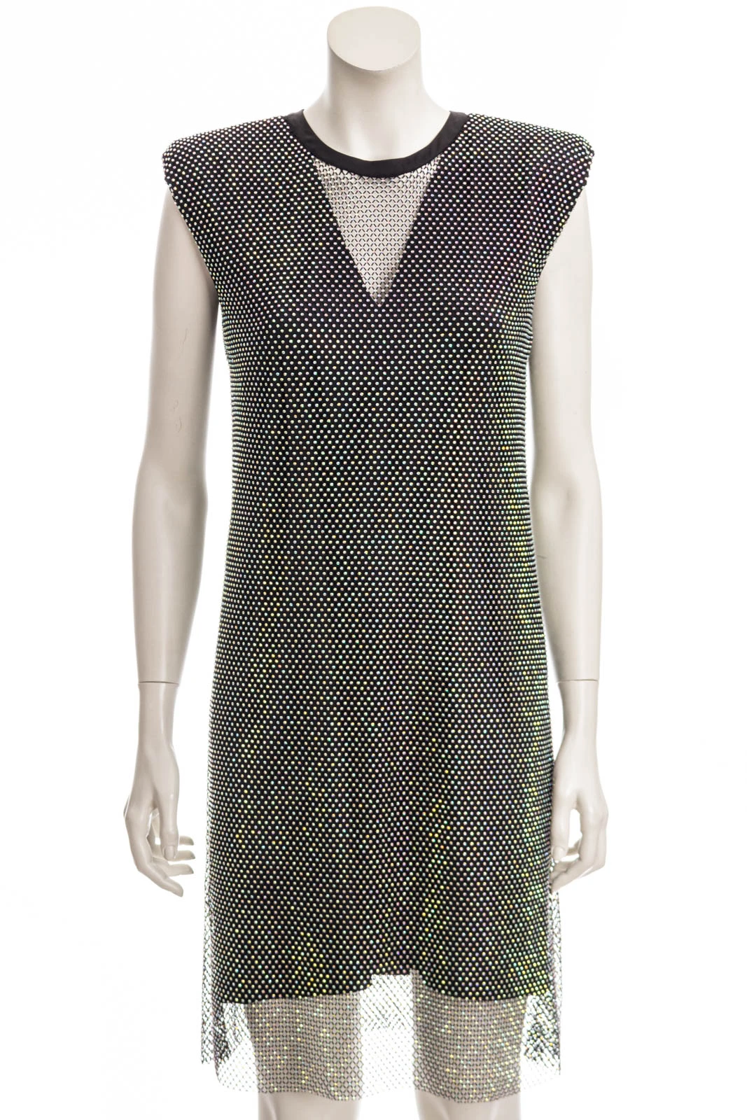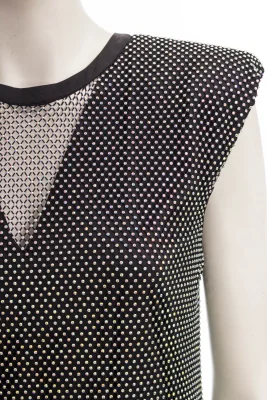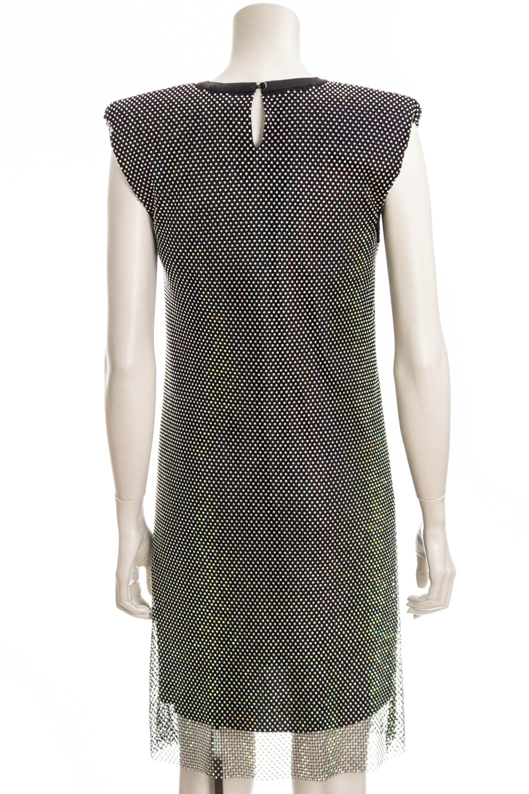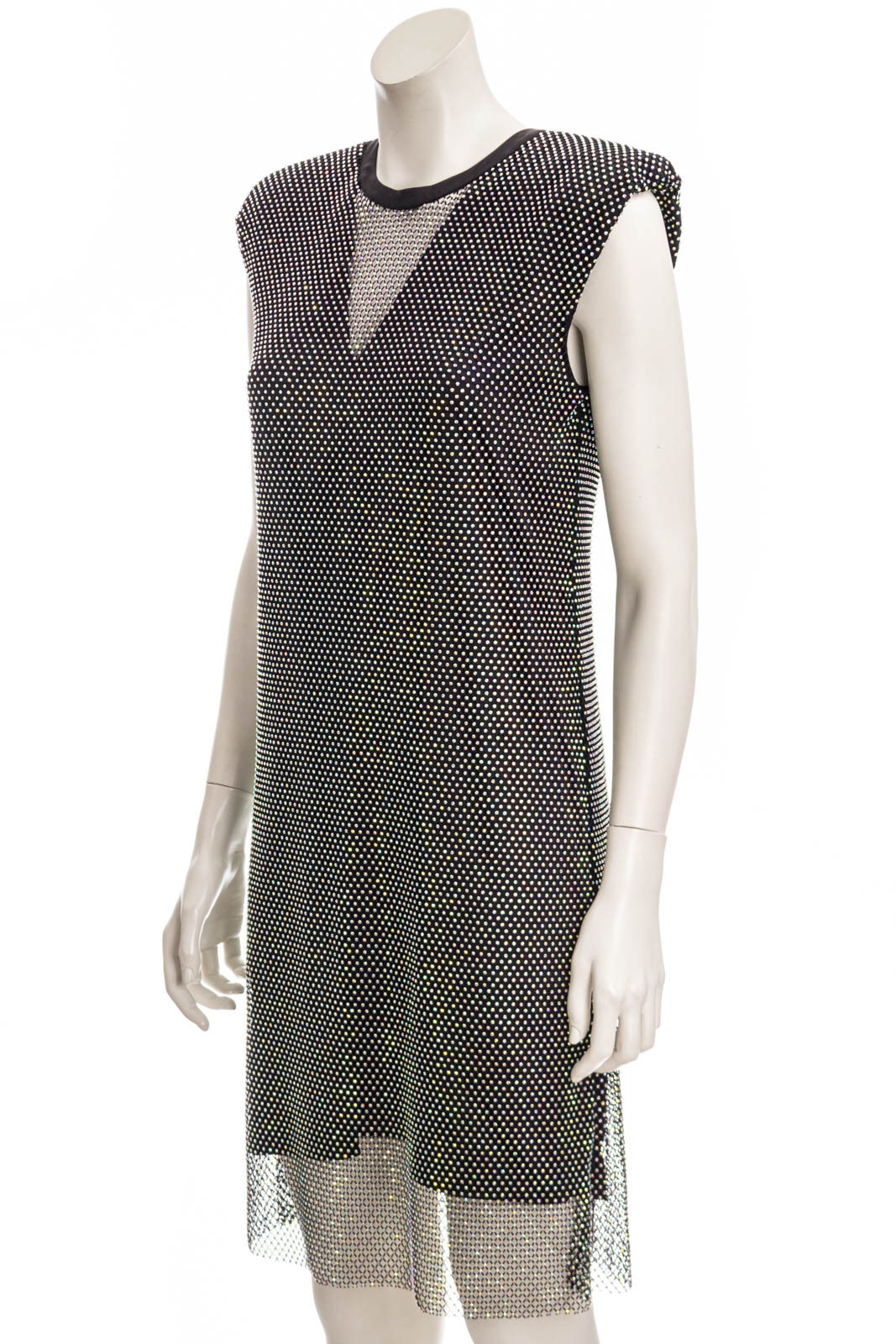 Ärmelloses BOSS Kleid aus schimmerndem Mesh mit gerader Passform, Schulterpolstern und softem Innenfutter.