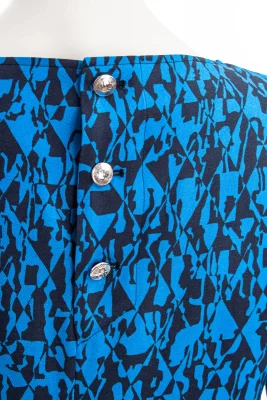 Gerade geschnittenes Kleid mit kurzem Arm und dekorativer Knopfleiste am RĂĽcken.