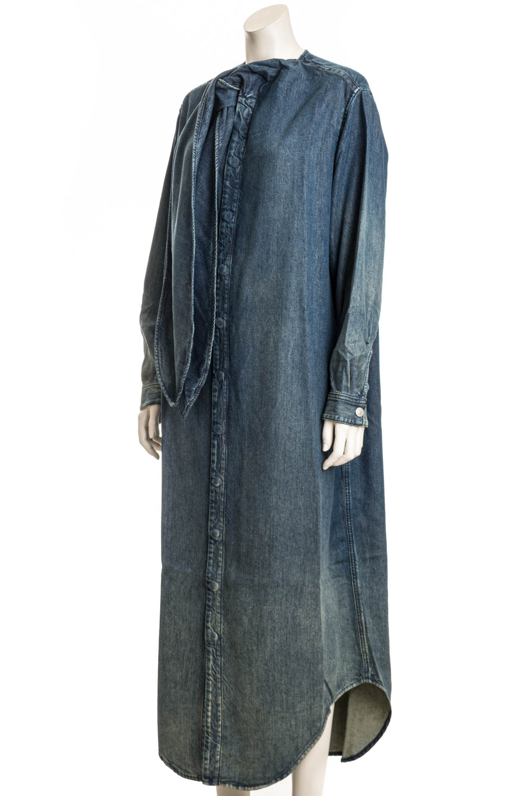 Dieses lange Kleid für Damen ist in einer geraden, entspannten Silhouette geschnitten. Mit versteckten Knöpfen, klassischen Hemdmanschetten und abgerundeten Säumen, während der Schalausschnitt auf verschiedene Weise gebunden werden kann.
