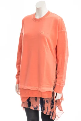 Modisches Sweatshirtkleid mit DIESEL-Logo auf der Brust. Die Kante aus Chiffon flieĂźt aus einem mehrlagigen, einseitig geschlitzten Saum mit Tunnelzug.