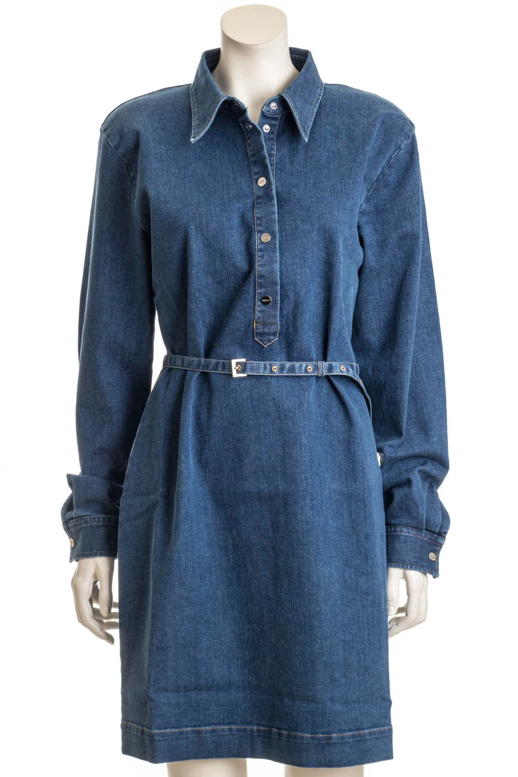 Das schmal geschnittene HUGO Kleid mit Taillengürtel und Knopfleiste aus elastischer Baumwolle lässt sich vielseitig kombinieren.