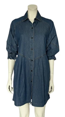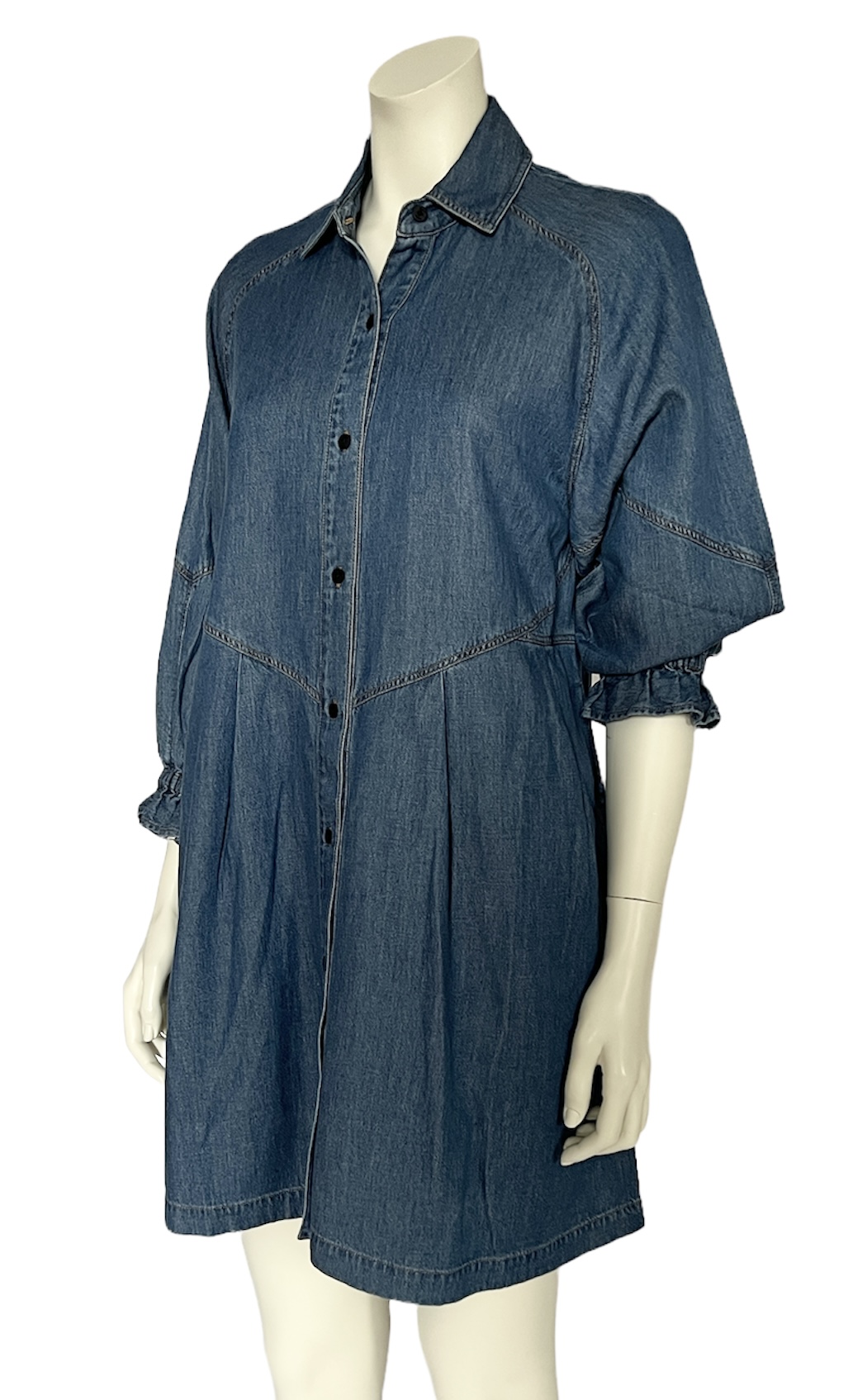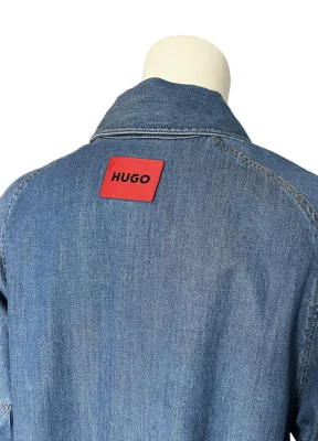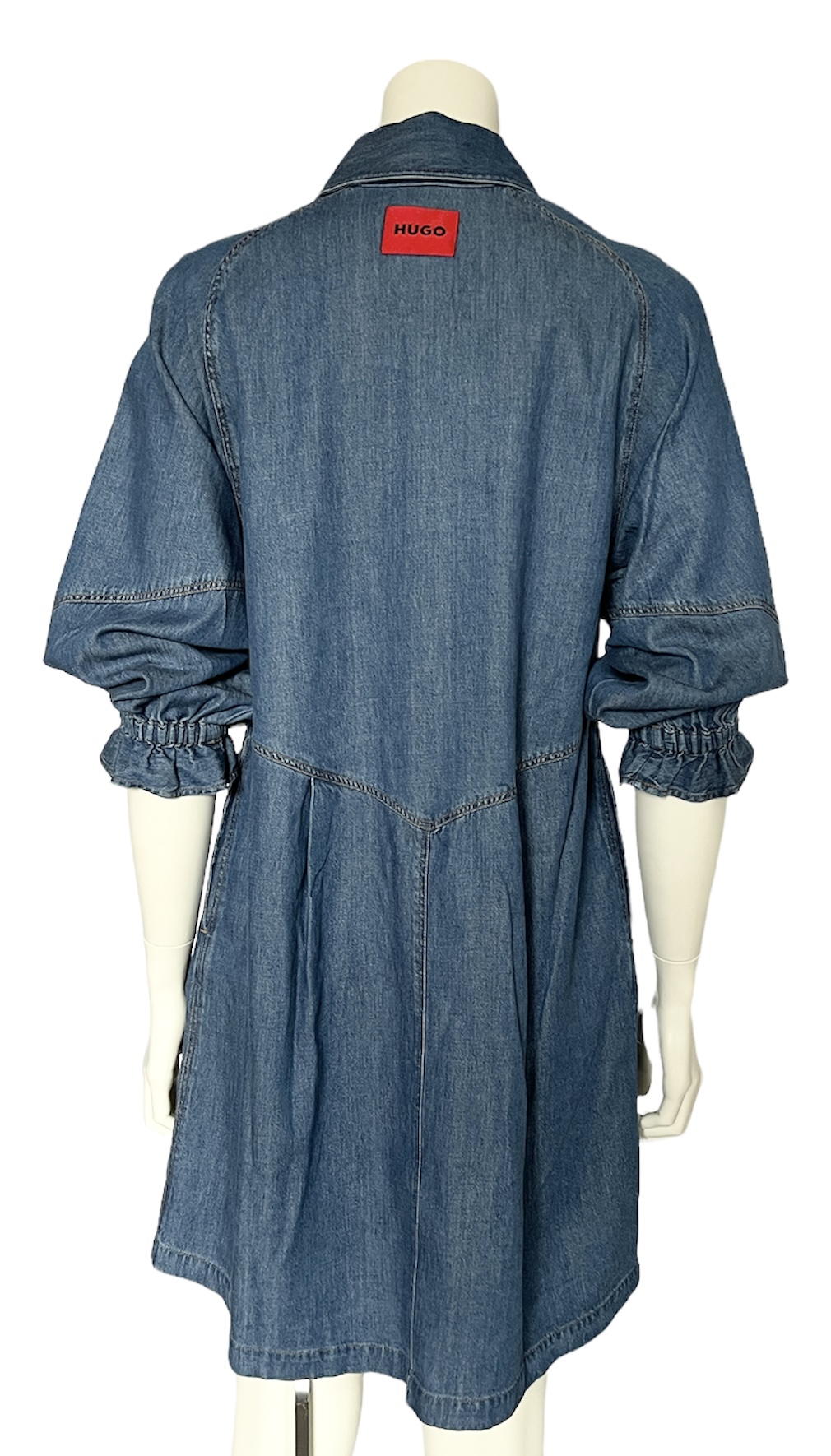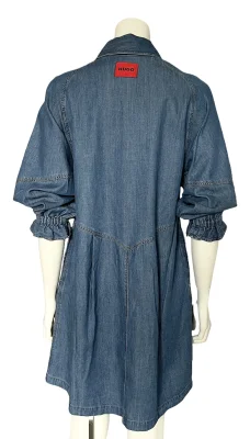 Lässiges Jeanskleid mit gerafften Ärmeln und HUGO-Logo im Nacken.