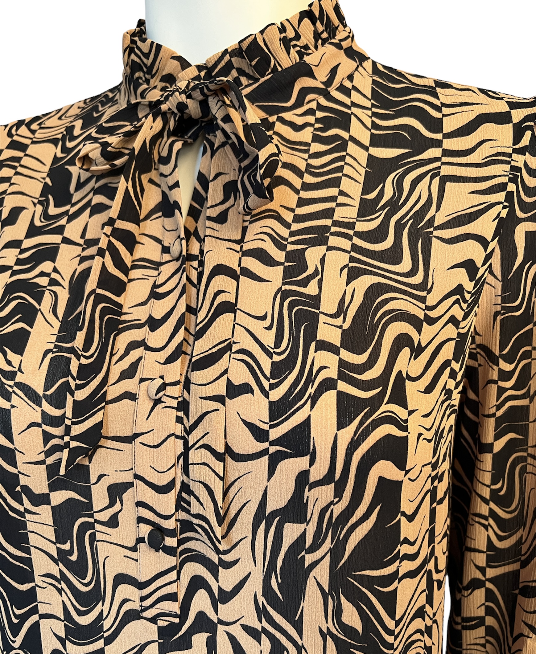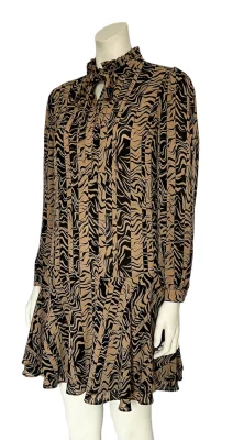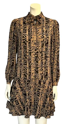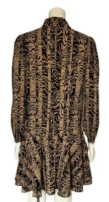 Leicht fallendes Kleid mit gerĂĽschtem Stehkragen.