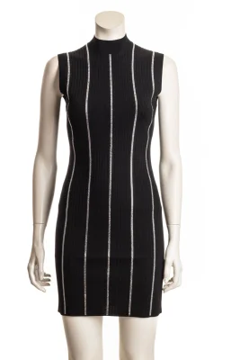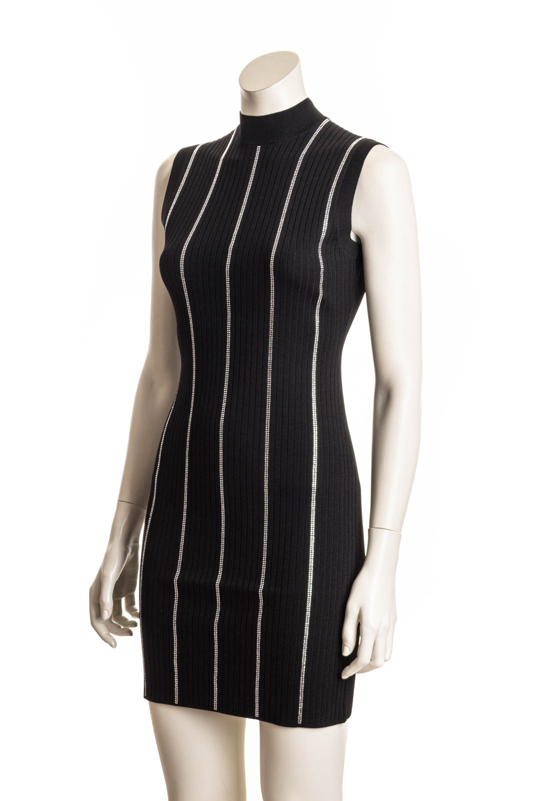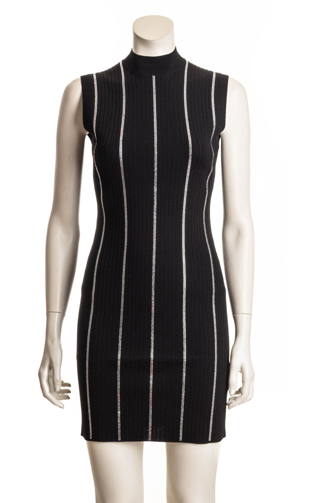 Eng anliegendes Feinstrick-Kleid mit Strasselementen auf der Vorderseite.