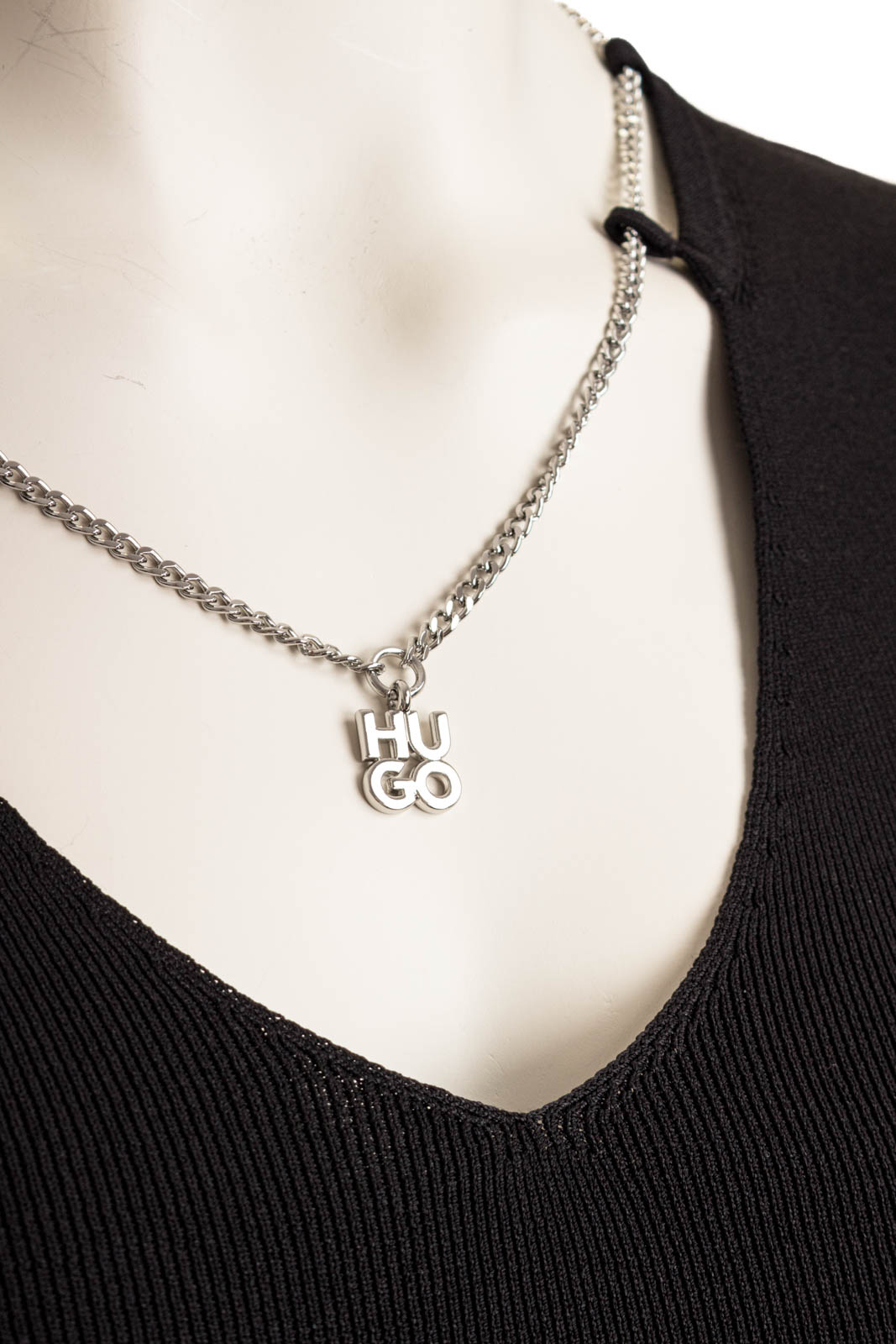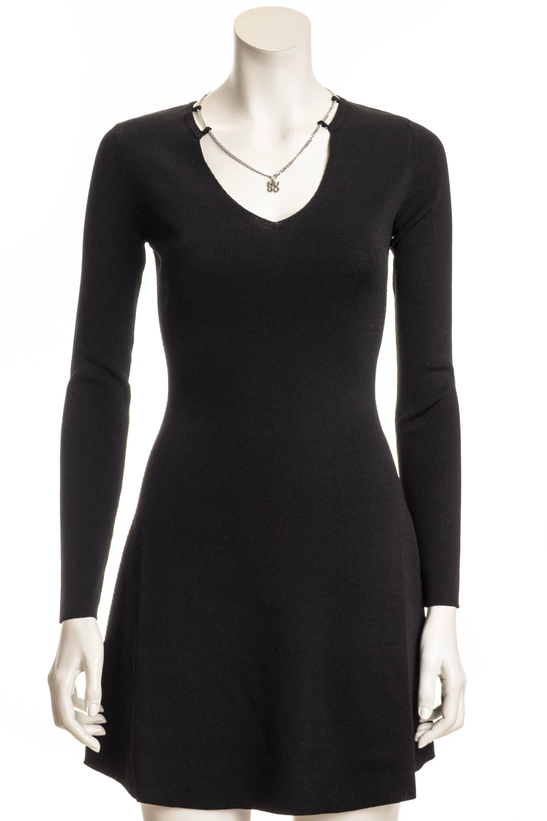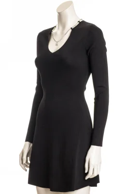Dieses Langarm-Strickkleid von HUGO mit ausgestelltem Rock und einer Kette am Kragen passt zu jeder Gelegenheit.