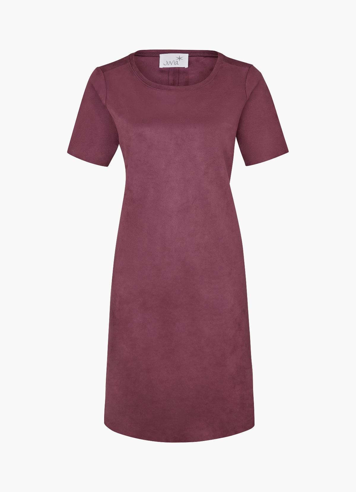 In der femininen Silhouette mit klassischem Rundhalsausschnitt und kurzen Ärmeln erweist sich das Kleid in Cassis als neues Lieblingspiece. Samtiges Tech-Velours verleiht labeltypische Comfiness. Für den lässigen Twist sorgen eine feine Teilungsnaht auf der Rückseite und Abschlüsse im Clean-Cut-Look.