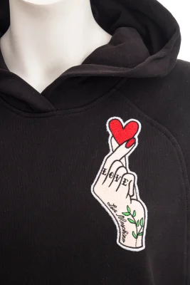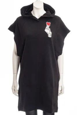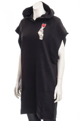 Modisches Kapuzen-Kleid mit Stickprint auf der Brust.