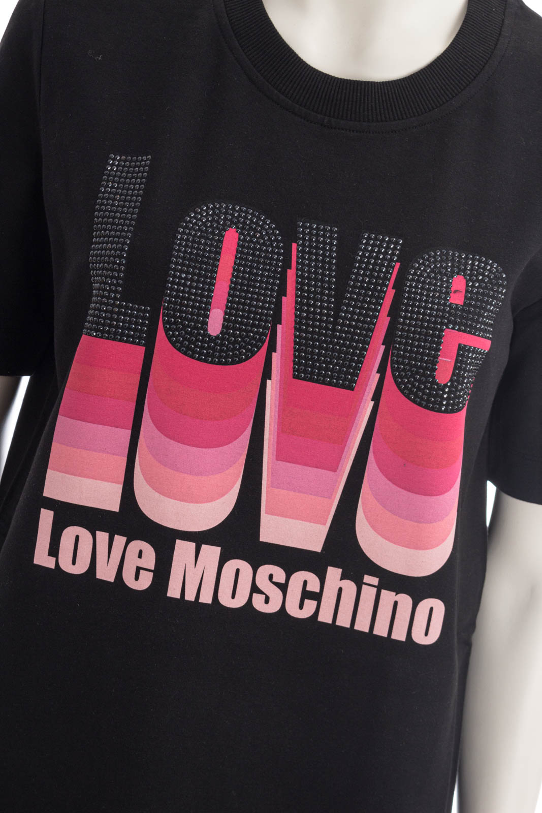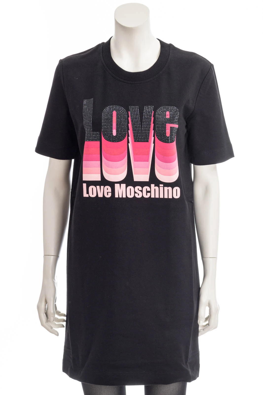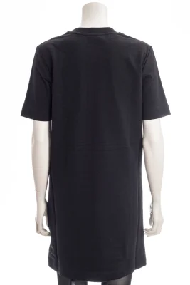 Legeres Shirtkleid mit Schriftzug und Strass-Applikationen auf der Brust.