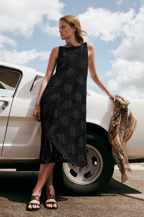 Ärmelloses Slip-Kleid mit aufwendigem Häkeldesign aus Baumwolle. Das feminine, schmal geschnittene Midikleid ist gefüttert und besitzt auf der Rückseite einen Reißverschluss.