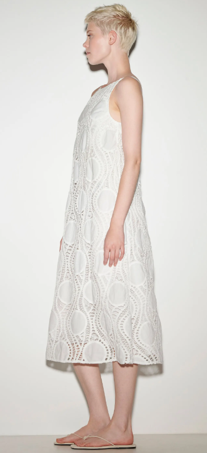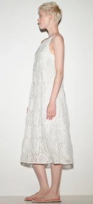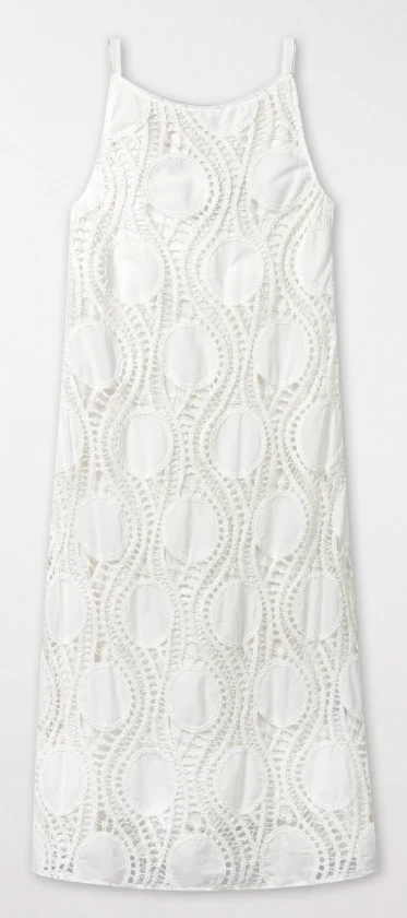 Ärmelloses Slip-Kleid mit aufwendigem Häkeldesign aus Baumwolle. Das feminine, schmal geschnittene Midikleid ist gefüttert und besitzt auf der Rückseite einen Reißverschluss.