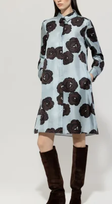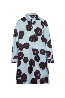 Hemdblusenkleid aus glattem, leicht fallendem Seidensatin mit exklusiv entwickeltem Blumen-Dessin. Der Hemdkragen und die durchgehende Knopfleiste sowie die Einknopf-Manschetten unterstreichen den klassischen und gleichzeitig modernen Look.