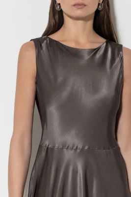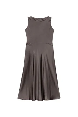 Wadenlanges Fit&Flare-Kleid aus luxuriösem, fein gewebtem Viskose-Satin. Auf der Rückseite befindet sich ein verdeckter Reißverschluss mit extra langem Zippbändchen.