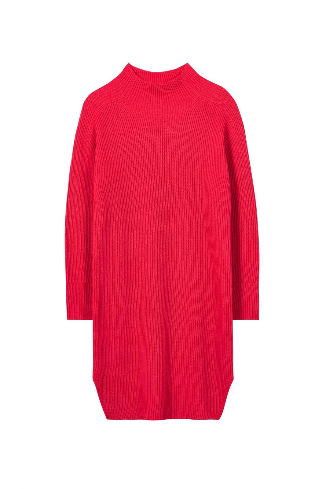 Locker geschnittenes Strickkleid mit angeschnittenem Kragen aus leichtem Wollmix-Garn. Raffiniert eingearbeitete Details im Strickmuster runden den hochwertigen WohlfĂĽhl-Look ab.