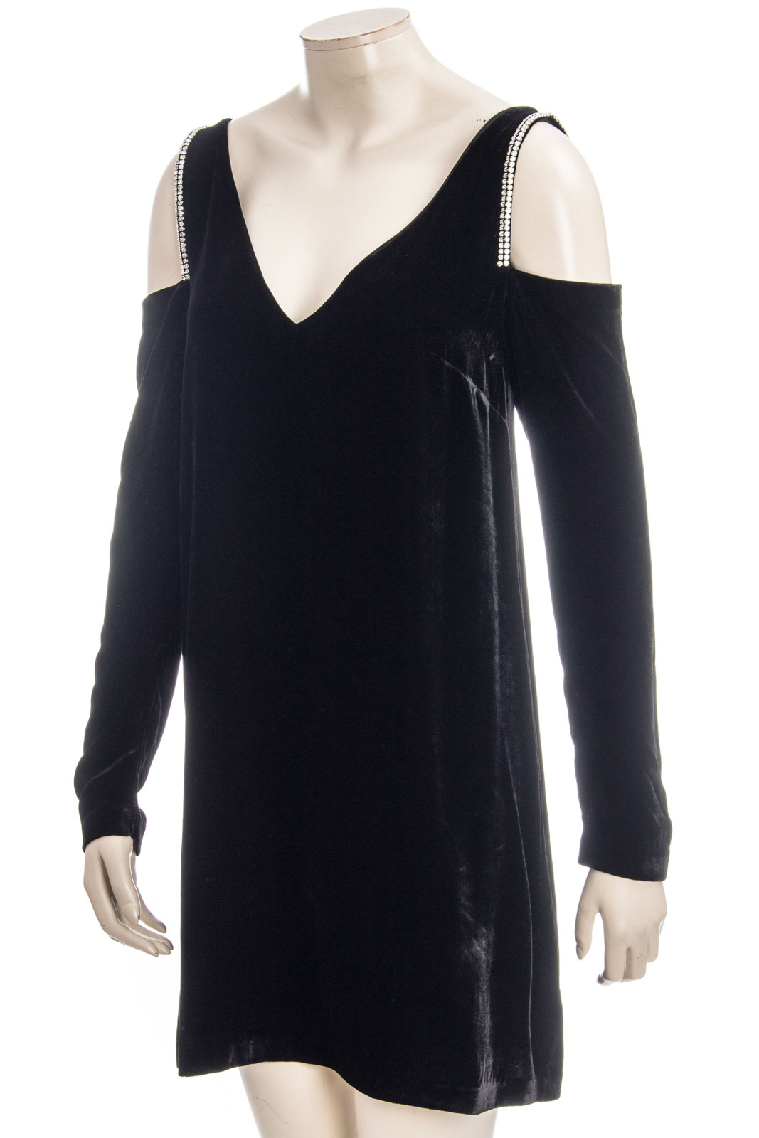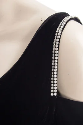 Modisches Off-Shoulder Samtkleid mit Steinchenbesatz.