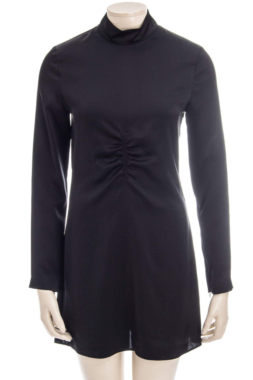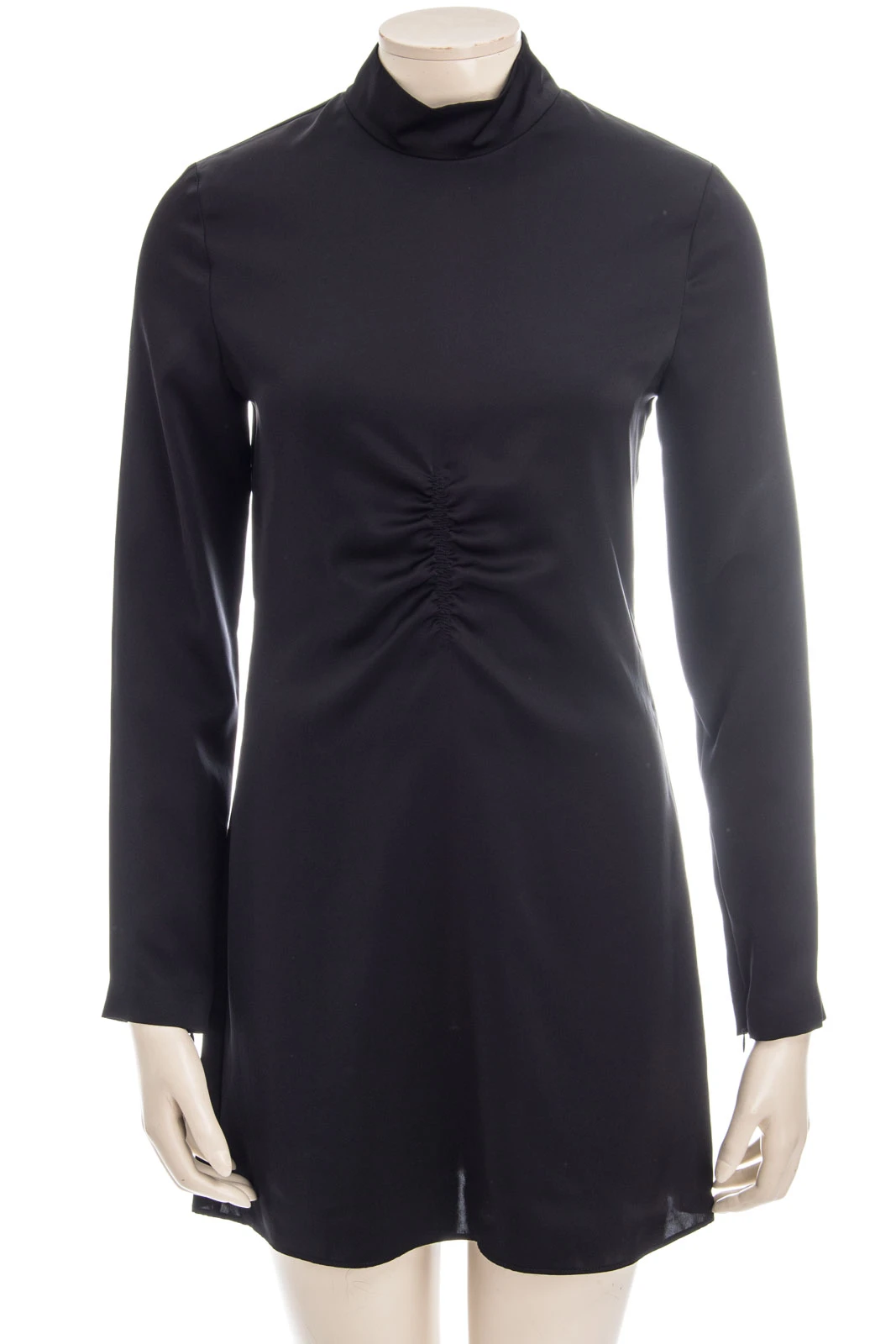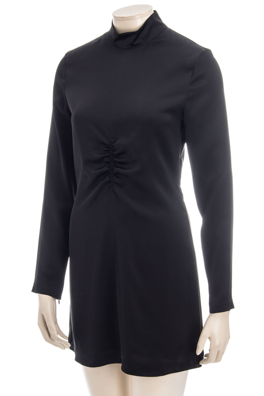 Schlichtes Langarmkleid mit Raffungen am Bauch.