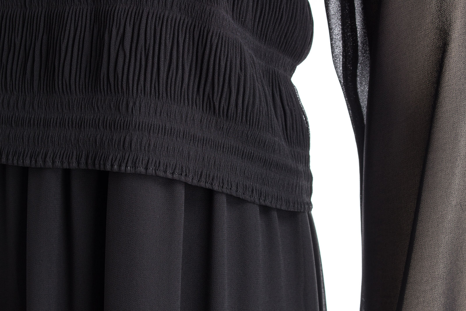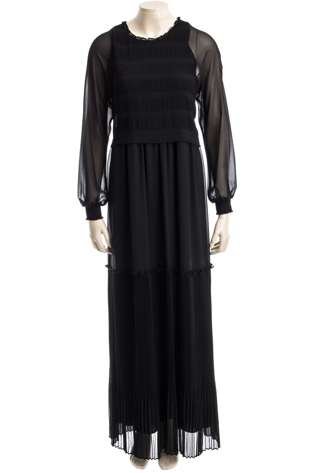 Modisches Maxi-Kleid mit raffinierten RĂĽschen und Plissee-Details.