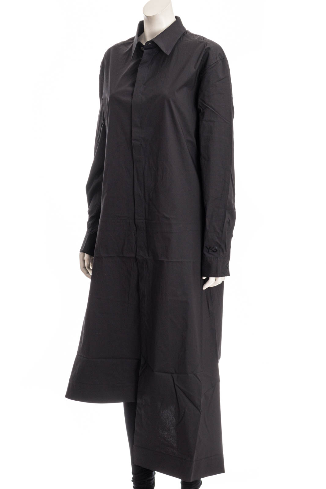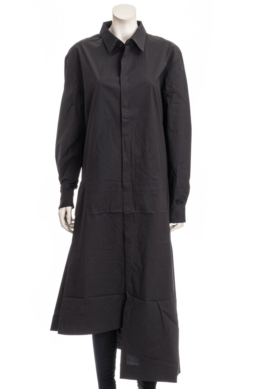 Lässig geschnittenes Y-3 Langarm-Kleid mit einem asymmetrischen Saum und Druckknopf in der Taille.