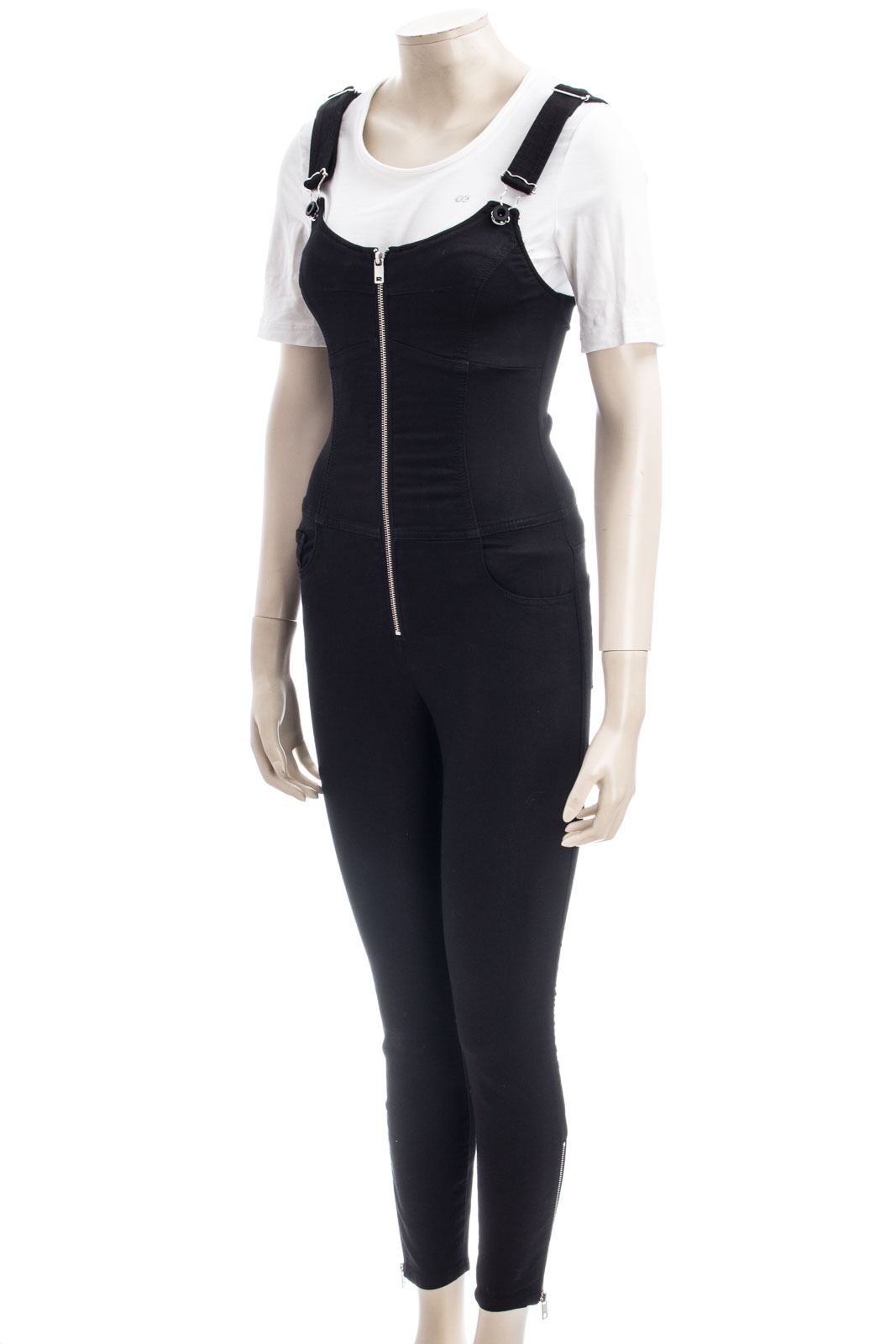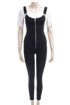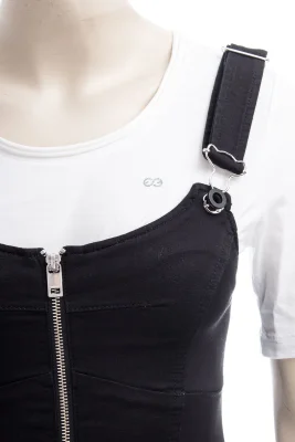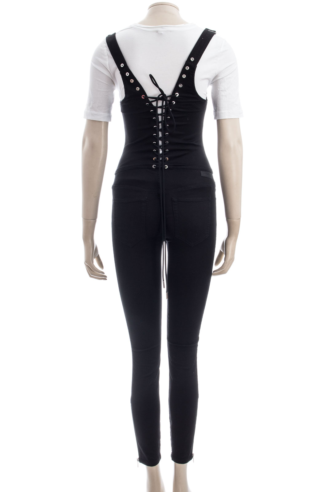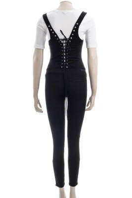 Trägern und Rücken im Schnürdesign, auffällige Metallösen, Reißverschlussdetails an den Knöcheln, Reißverschluss,Verstellbare Träger mit Latzhosenschnallen