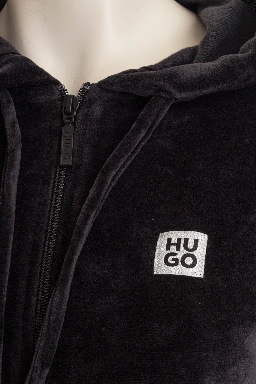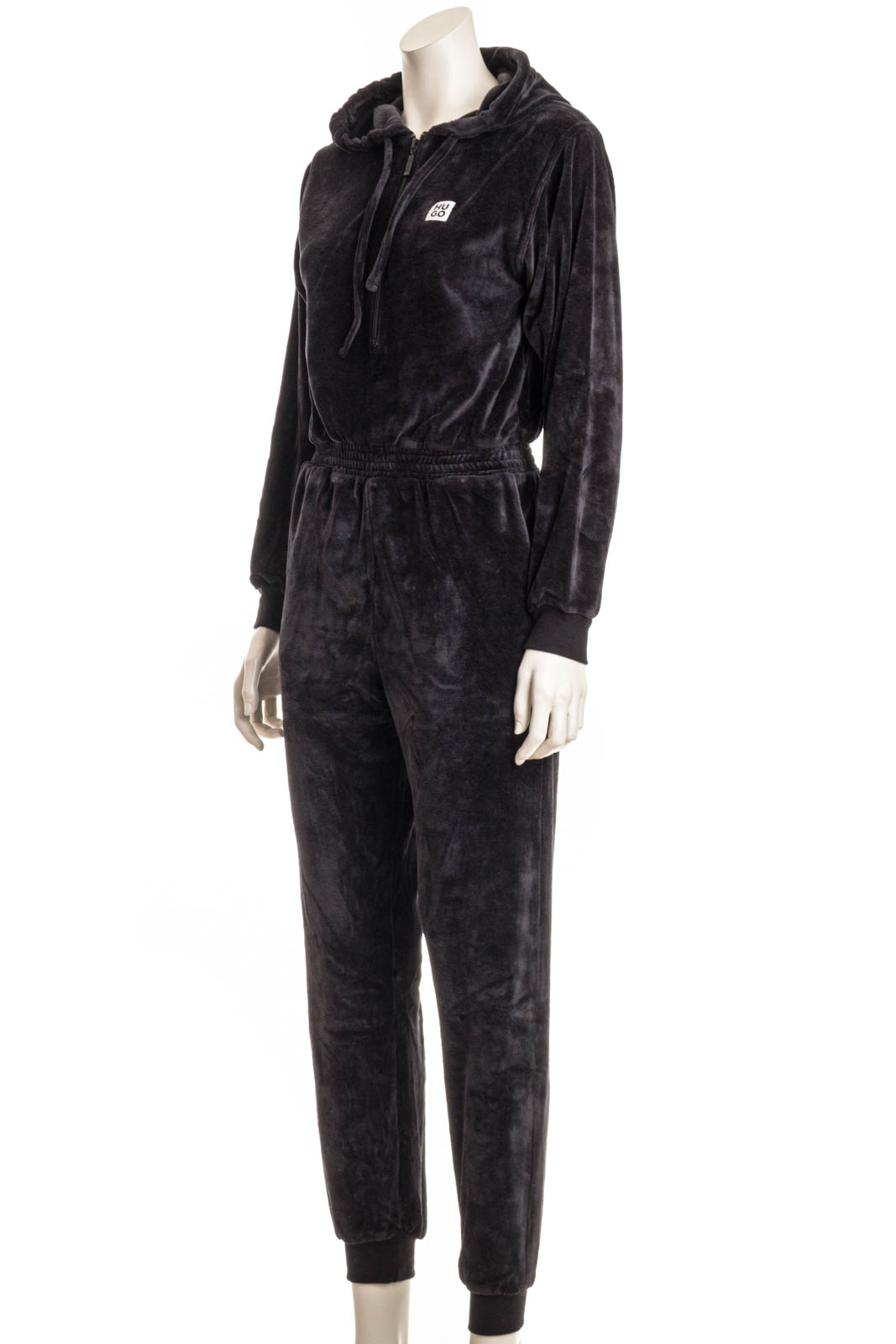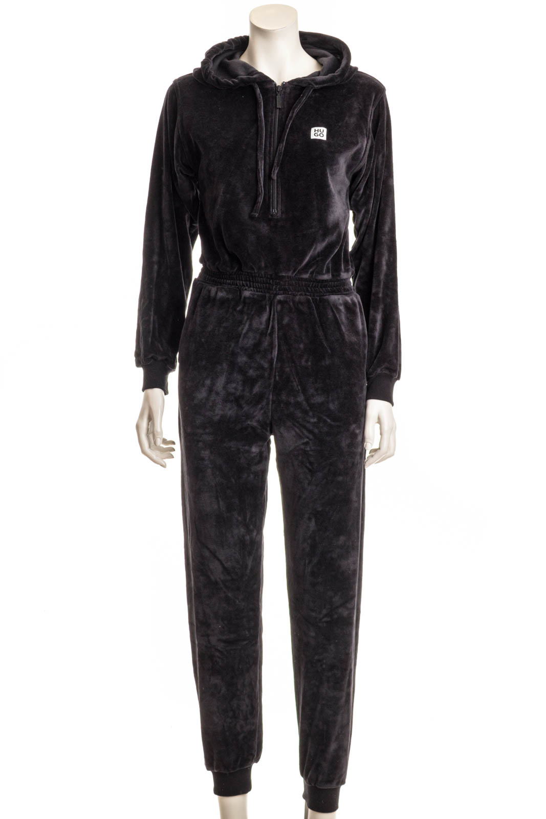 Der HUGO Overall aus einem Baumwoll-Mix mit Velours-Struktur verspricht ein luxuriöses Tragegefühl.