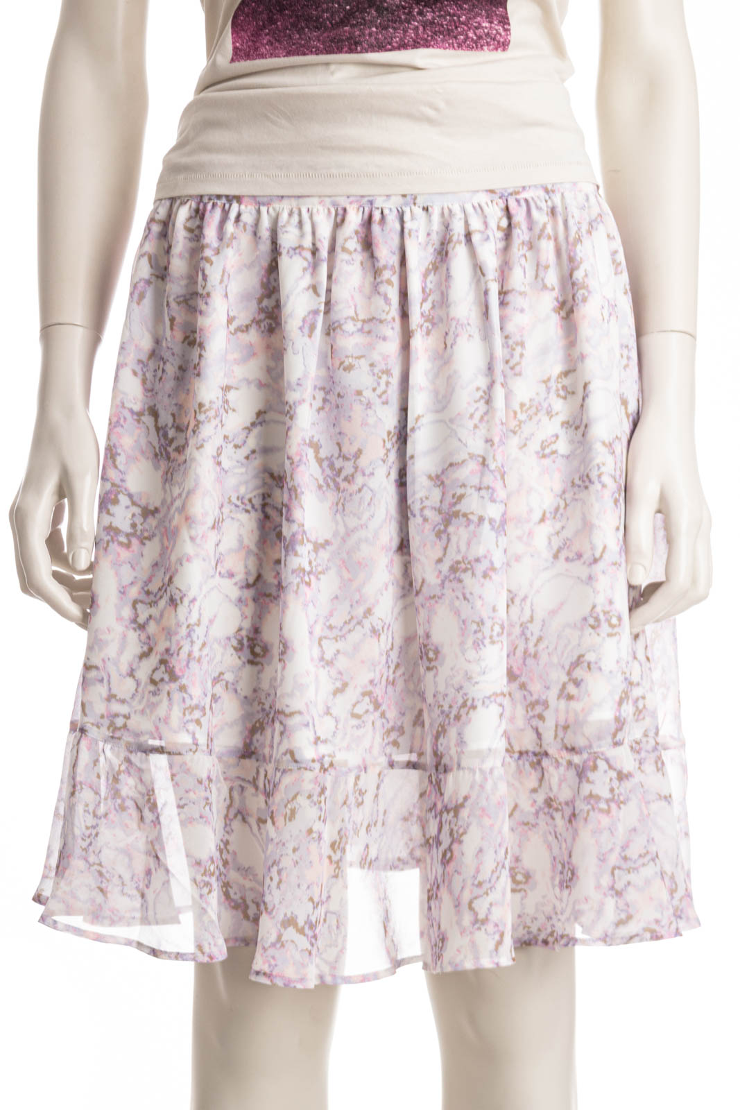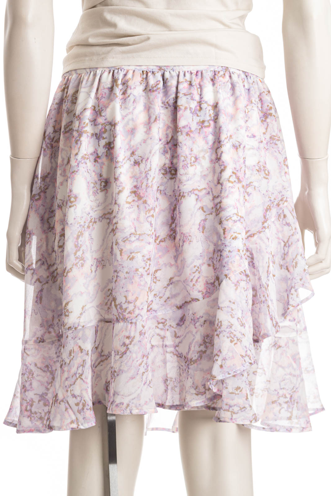 Gerade geschnittener BOSS Minirock aus einem elastischen Material-Mix mit mittlerer Bundhöhe, durchgehendem Print und Volantsaum.