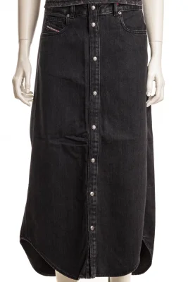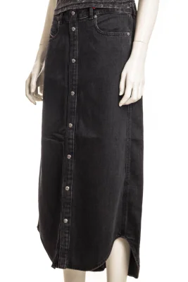 Midi-langer Denimrock mit einem Anteil an Bio-Baumwolle. Der Verschluss mit Knöpfen vorne verleiht eine funktionale Note. Das charakteristische Rückenschild an der Taille rundet den Look ab.