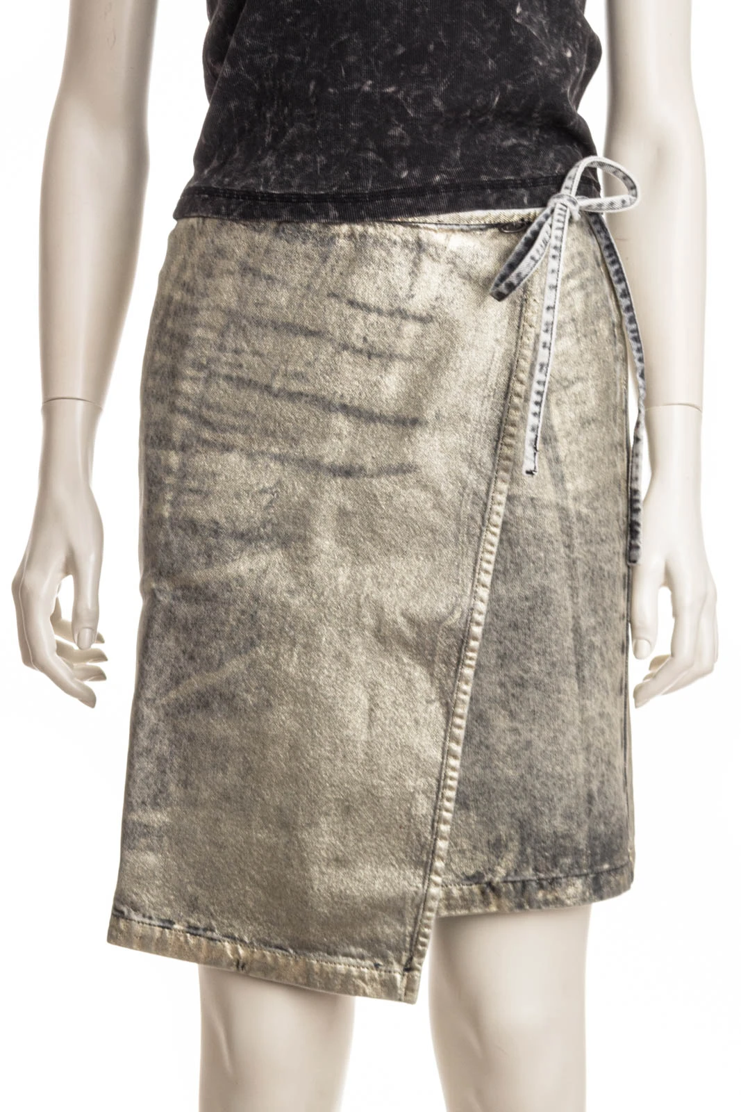 Rock für Damen in knielanger Wickel-Silhouette. Er kann dank dem Gürtel je nach Styling tief oder hoch auf dem Bund getragen werden.
