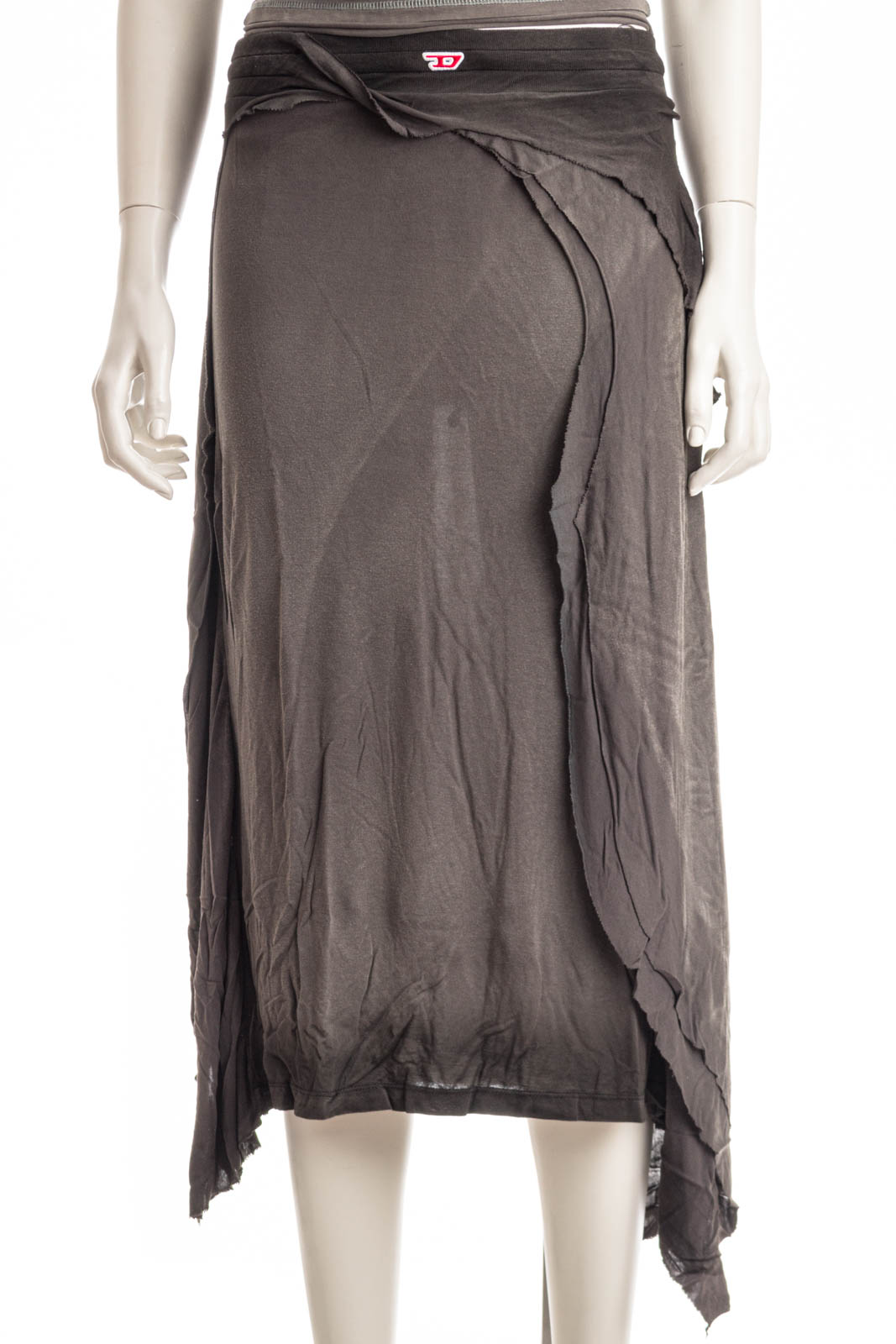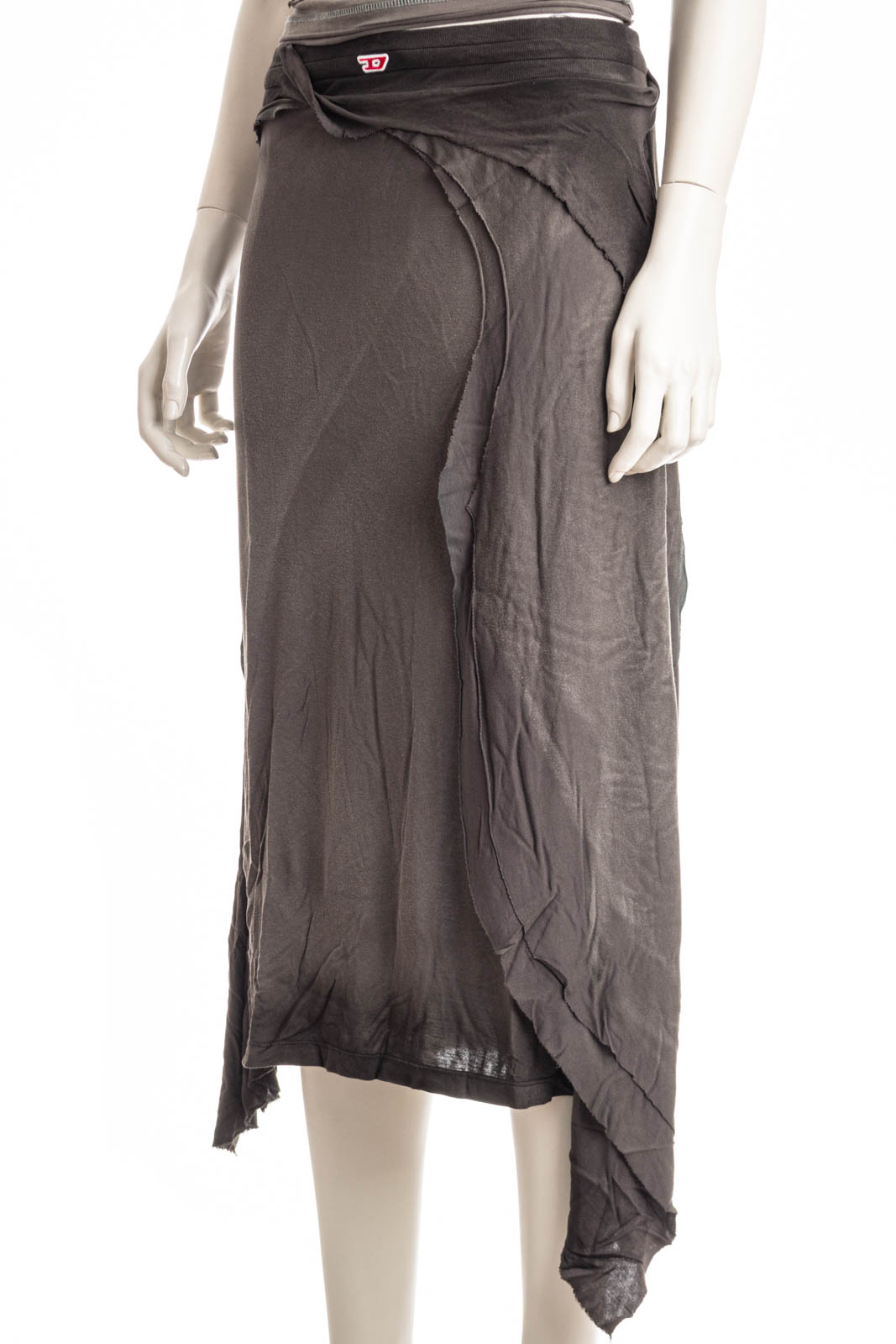 Dieser asymmetrische Rock mit aufgebrachtem Print sorgt für einen authentischen, vielgetragenen Look. Die Wickel-Silhouette ist mit offenen Kanten gefertigt und das DIESEL-Logo ziert die Hüfte.