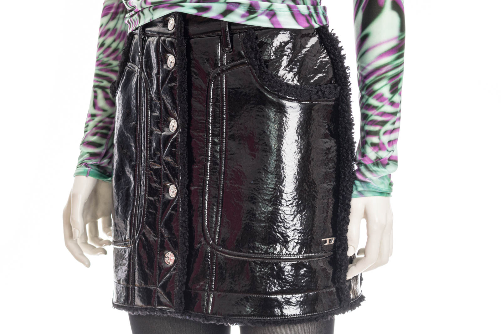 Modischer gefütterter Rock in Lackoptik.