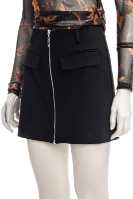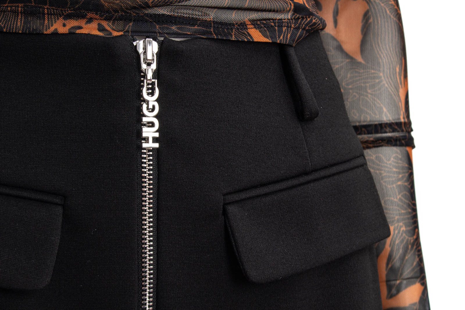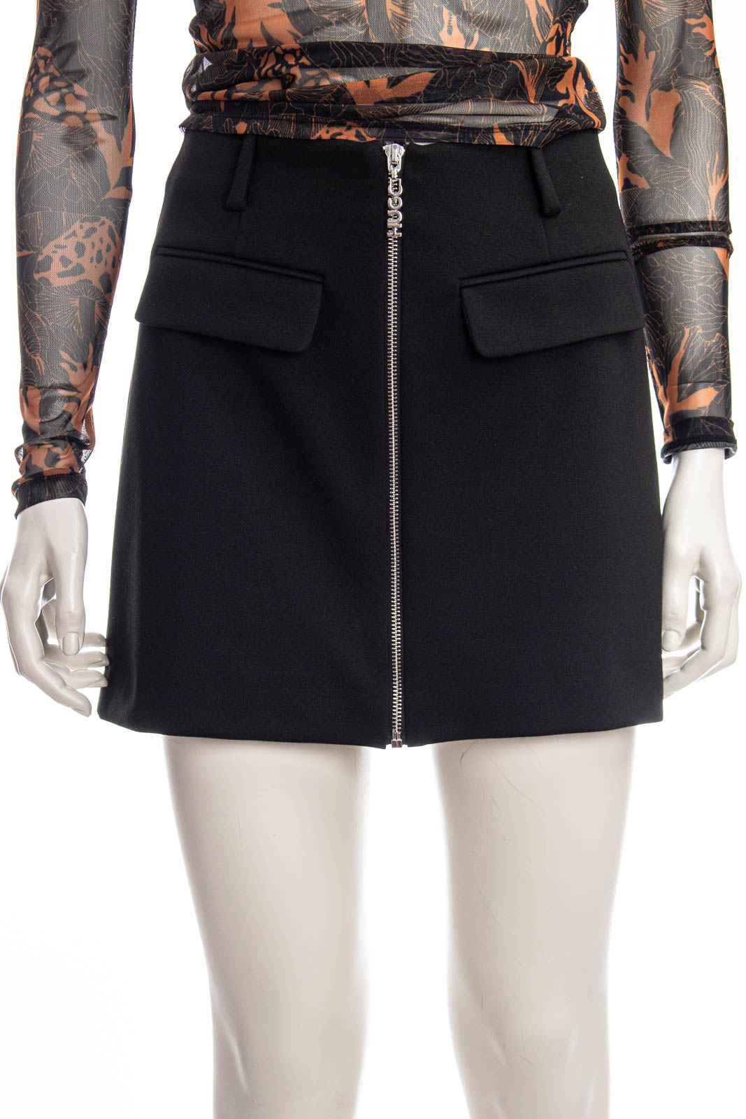 Vielseitig kombinierbarer HUGO Minirock aus Stretch-Jersey mit hohem Bund und einem Reißverschluss mit Logo-Zipper auf der Vorderseite.