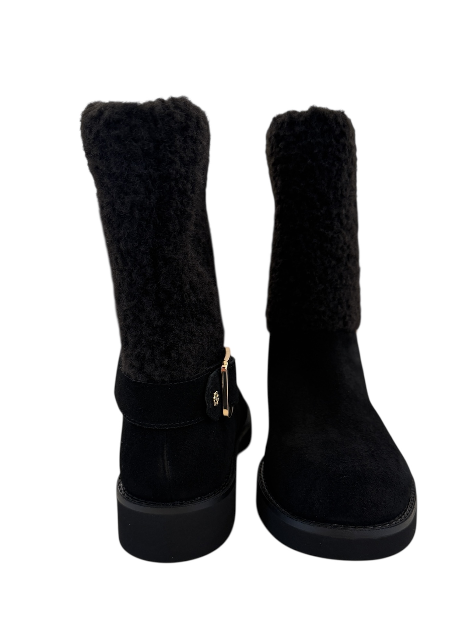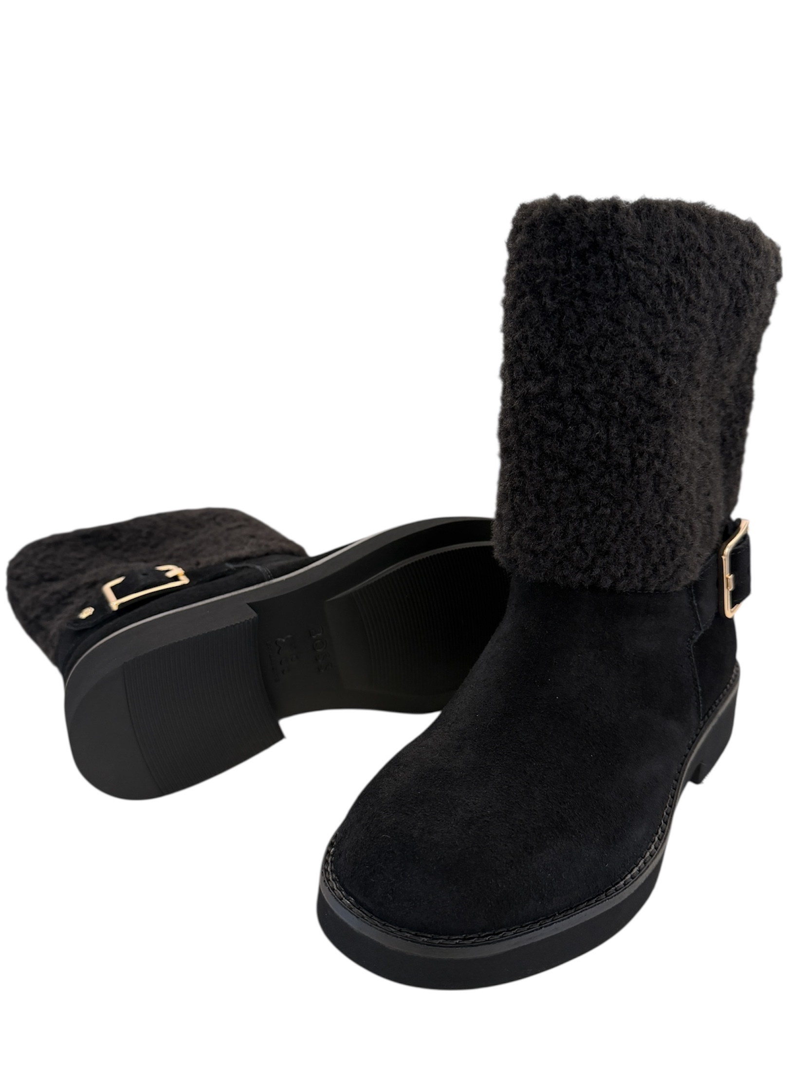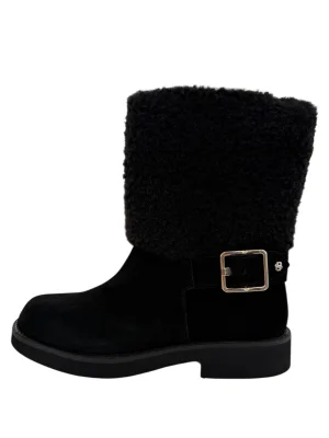 Wildleder-Boots mit goldfarbender Schnalle.