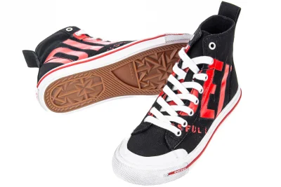 High Top-Turnschuh für Herren aus strapazierfähigem Canvas mit einem großen Diesel For Successful Living-Print. Midsohle aus vulkanisiertem Gummi mit Profilaußensohle und Zehenkappe aus Gummi.