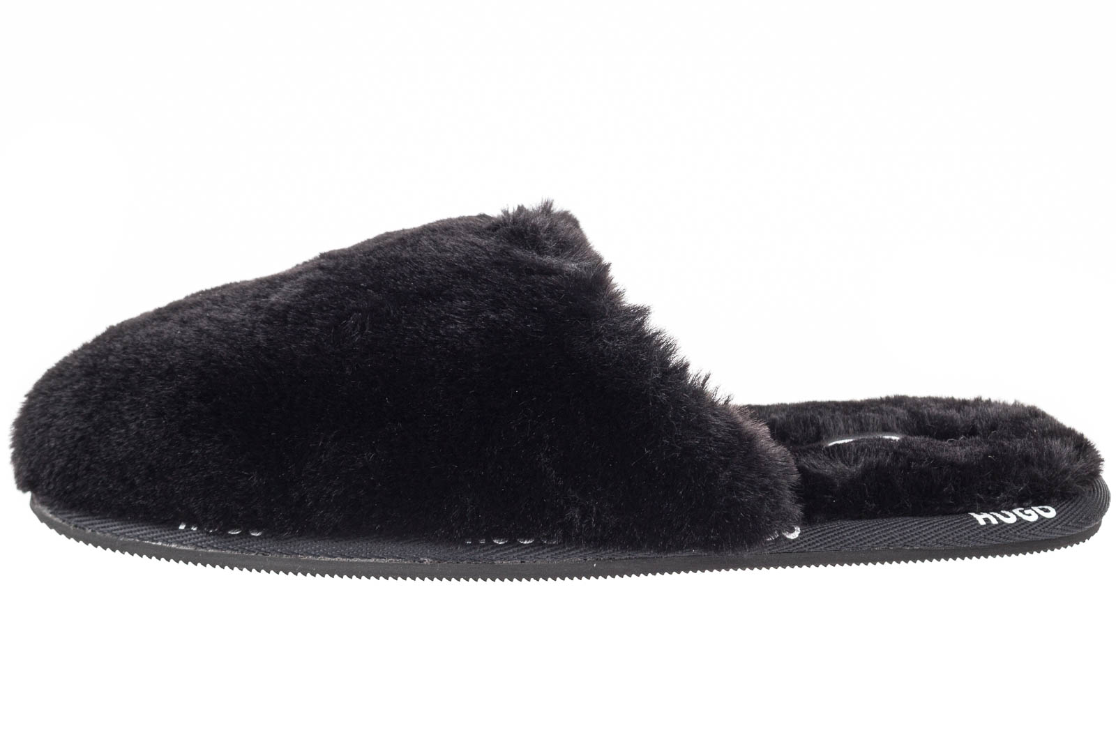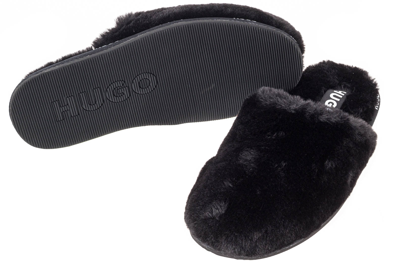 Besonders weiche HUGO Hausschuhe. Die komfortablen Damen-Schuhe aus flauschigem Kunstfell haben ein kontrastfarbenes Logo seitlich an der Sohle.