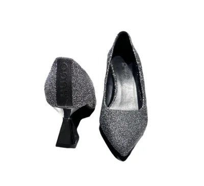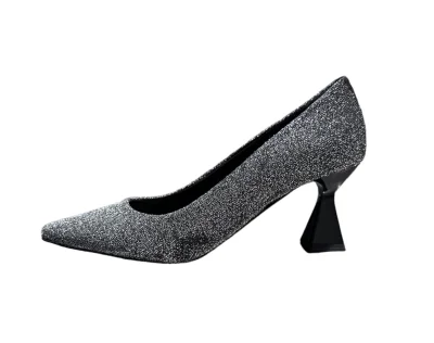 Modische Pumps mit silberfarbenden Glitzergarn.