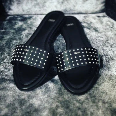 Flache Pantoletten mit Nietenbesatz