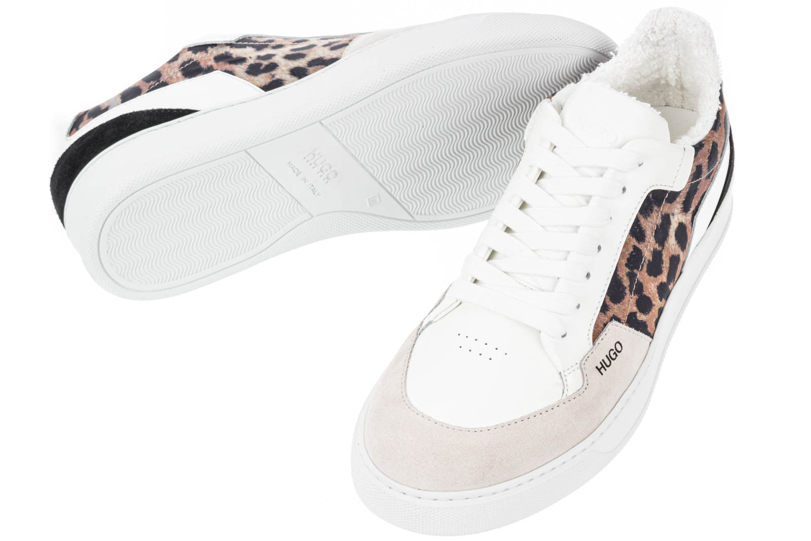 Sneaker mit seitlichem Leo-Print aus Ledermix.