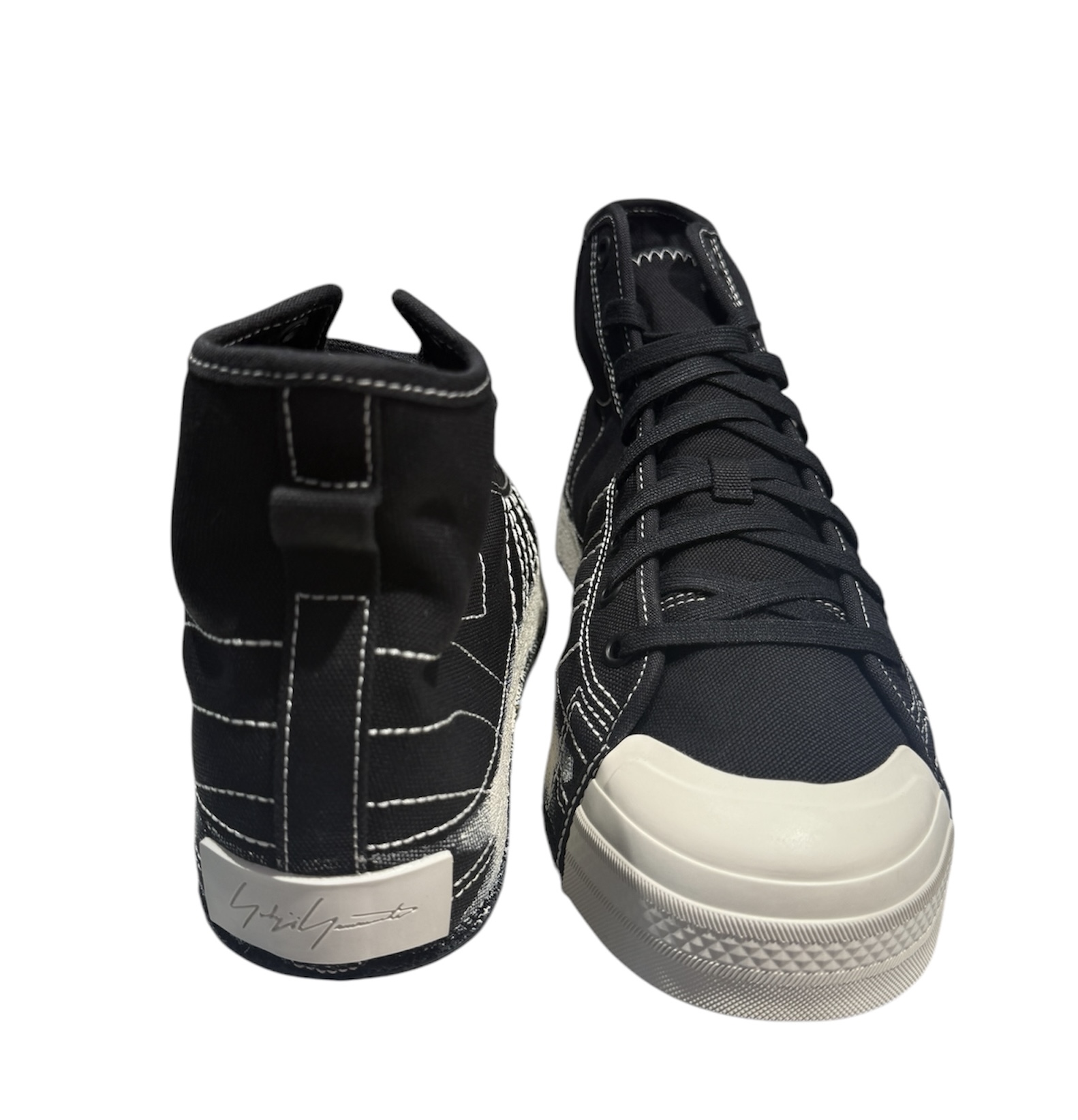 Modische High-Sneaker mit farblich abgesetzten Nähten und YOHJI YAMAMOTO Signature an der Sohle.