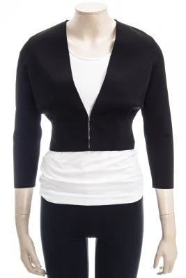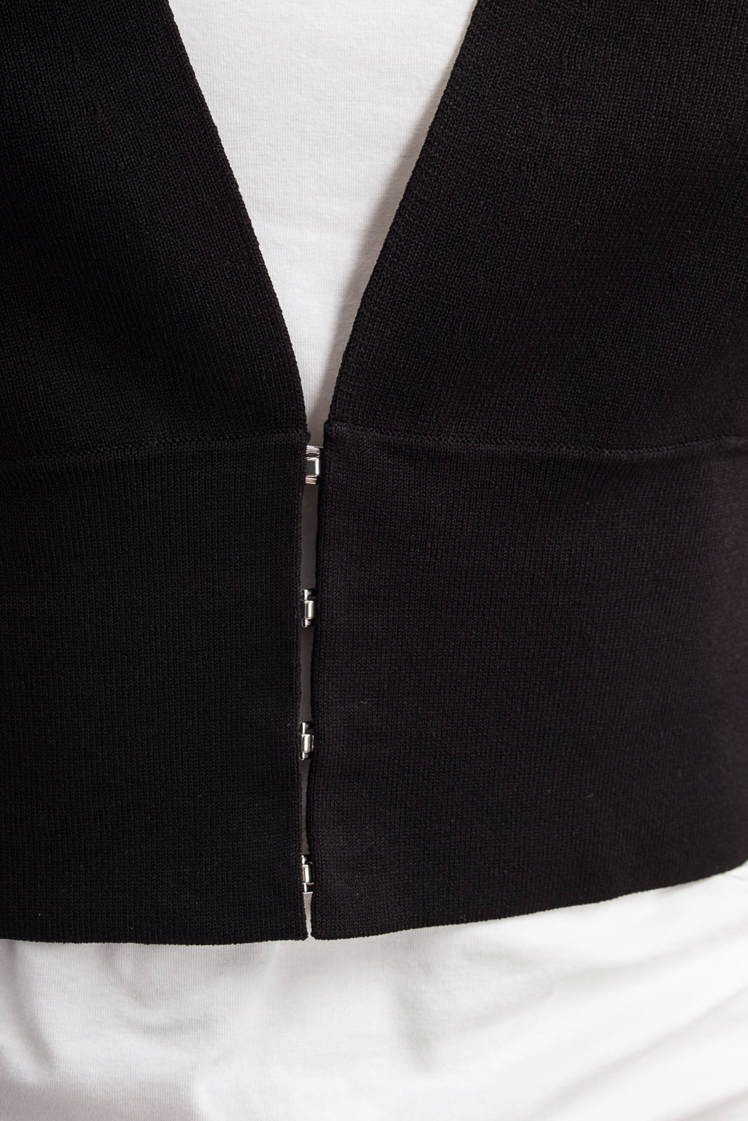 Slim-Fit Jacke mit V-Ausschnitt und HakenverschlĂĽssen