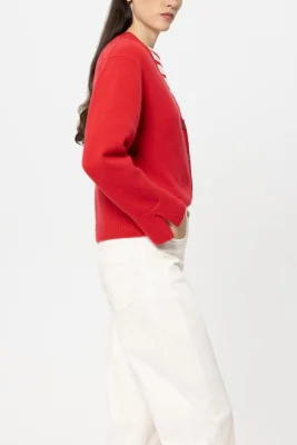 Cardigan aus edler Kaschmir-Mischung mit V-Ausschnitt, Knopfleiste und aufgesetzter Brusttasche. Die langen Ärmel habe breite Rippstrickbündchen mit Seitenschlitzen.