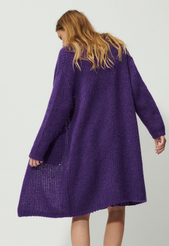 Grob gestrickter, offener Longcardigan aus hochwertiger, italienischer Wollmischung. Das leichte, besonders weiche Garn sorgt für einen hohen Tragekomfort. Zusätzlich betont die cleane Verarbeitung die Wertigkeit des Materials.