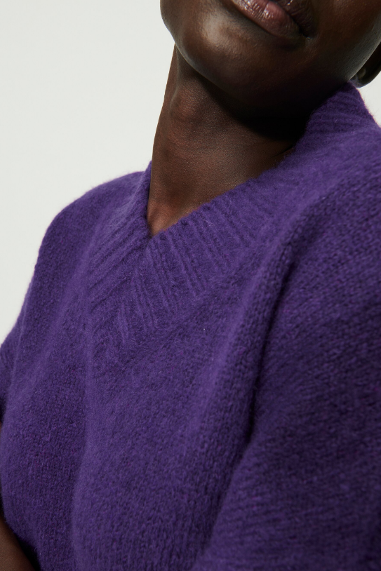 Leichter Pullover mit V-Ausschnitt aus hochwertigem, italienischem Woll-Mix. Die lässige Optik wird durch die überschnittenen Schultern erzeugt.