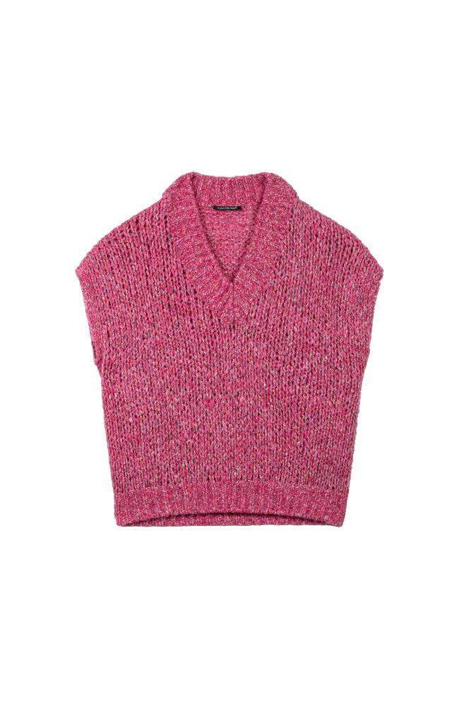 Grobstrick-Weste mit V-Ausschnitt und überschnittenen Ärmeln.