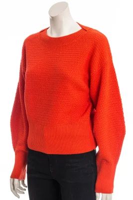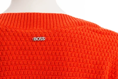 BOSS Strickpullover mit verschiedenen Strukturen und Puffärmeln, der aus softer Bio-Baumwolle mit edlem Seiden-Anteil gefertigt ist.