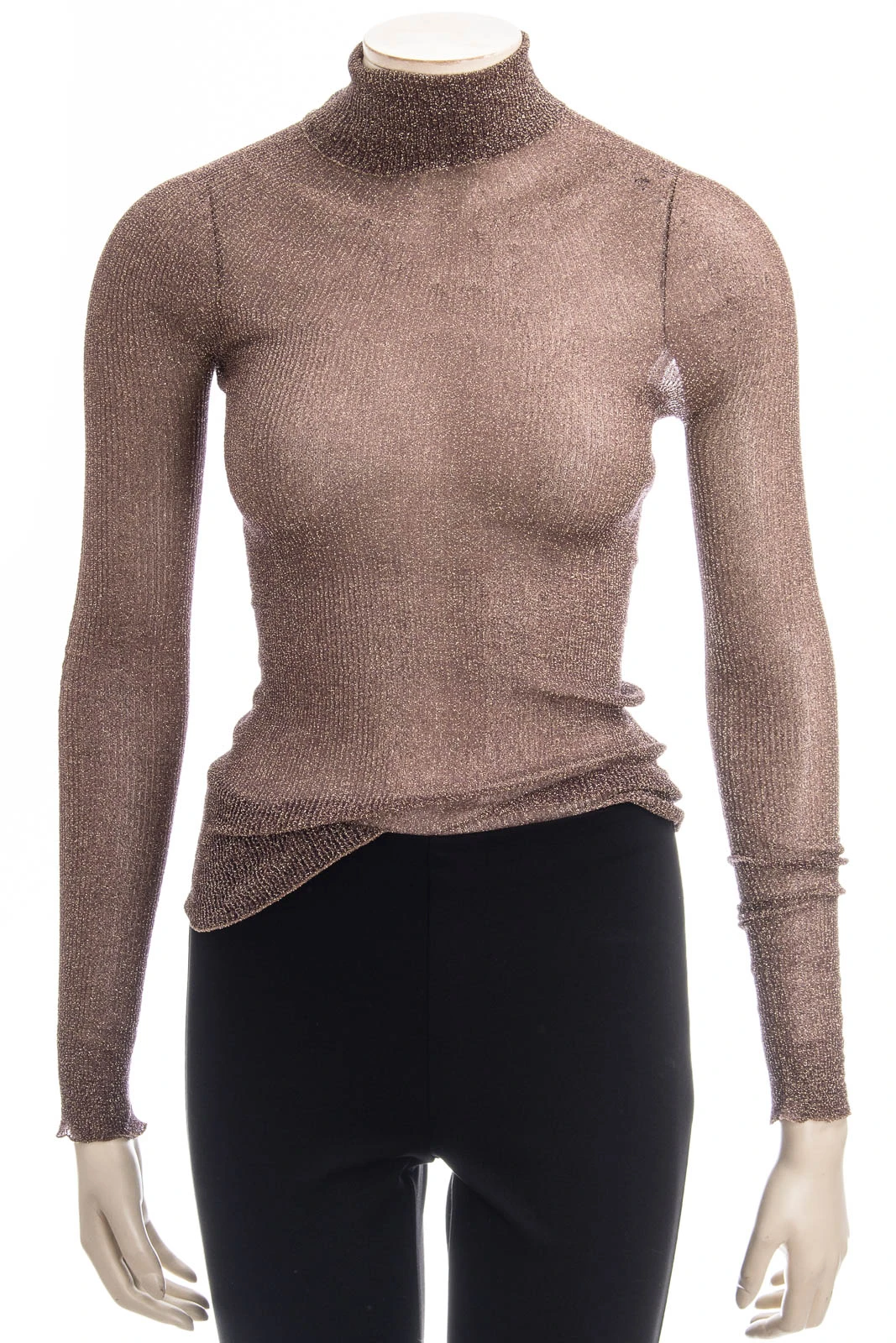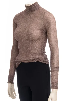 dünner Mesh-Rollkragenpullover mit Lurexfäden