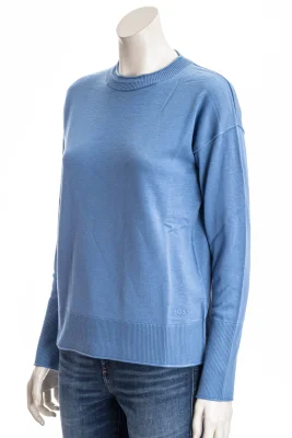 Zeitgemäßer, femininer BOSS Pullover mit gerader Passform, Rundhalsausschnitt und langen Ärmelbündchen mit Schlitzen.