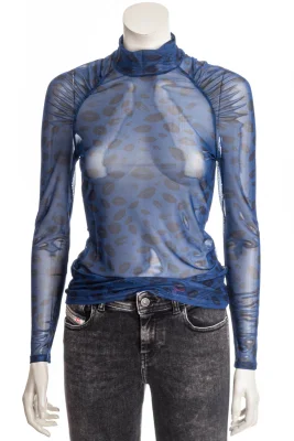 Vielseitig kombinierbares HUGO Top aus elastischem Mesh mit schmaler Passform, Stehkragen und langen Rüschenärmeln.