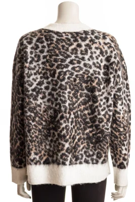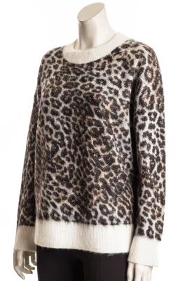 Der HUGO Pullover aus einem gebürsteten Gewebe mit Woll- und Alpaka-Anteil ist ein stylisher und gemütlicher Layer mit Leoparden-Jacquard. Unifarbene Besätze. Lockere Passform.