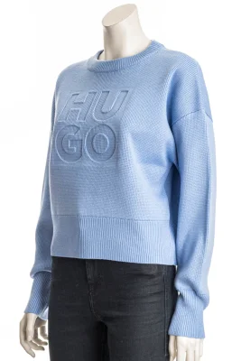 Der entspannt geschnittene HUGO Womenswear Pullover bringt das ganze Jahr über klassische Struktur in deinen Kleiderschrank. Der Style mit Schurwoll-Anteil ist auf der Brust mit einem geprägten Logo versehen.