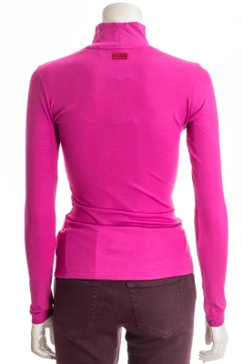 Schmal geschnittenes HUGO Longsleeve aus Stretch-Gewebe mit Stehkragen und Logo-Detail.