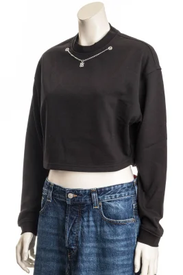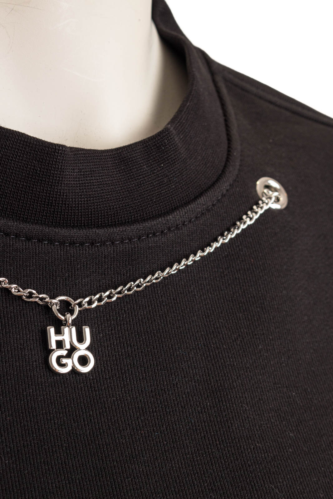 HUGO Sweatshirt in Cropped-Länge im Boxy-Fit. Das Oberteil aus einem Baumwoll-Mix mit Elasthan-Anteil ist mit einer abnehmbaren, charakteristischen Kette versehen.
