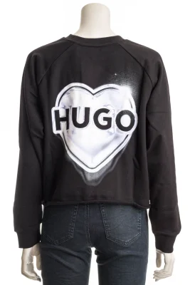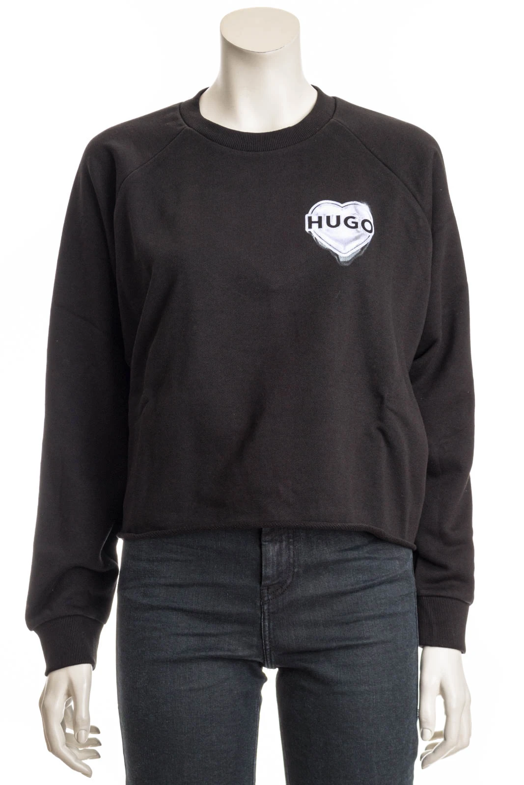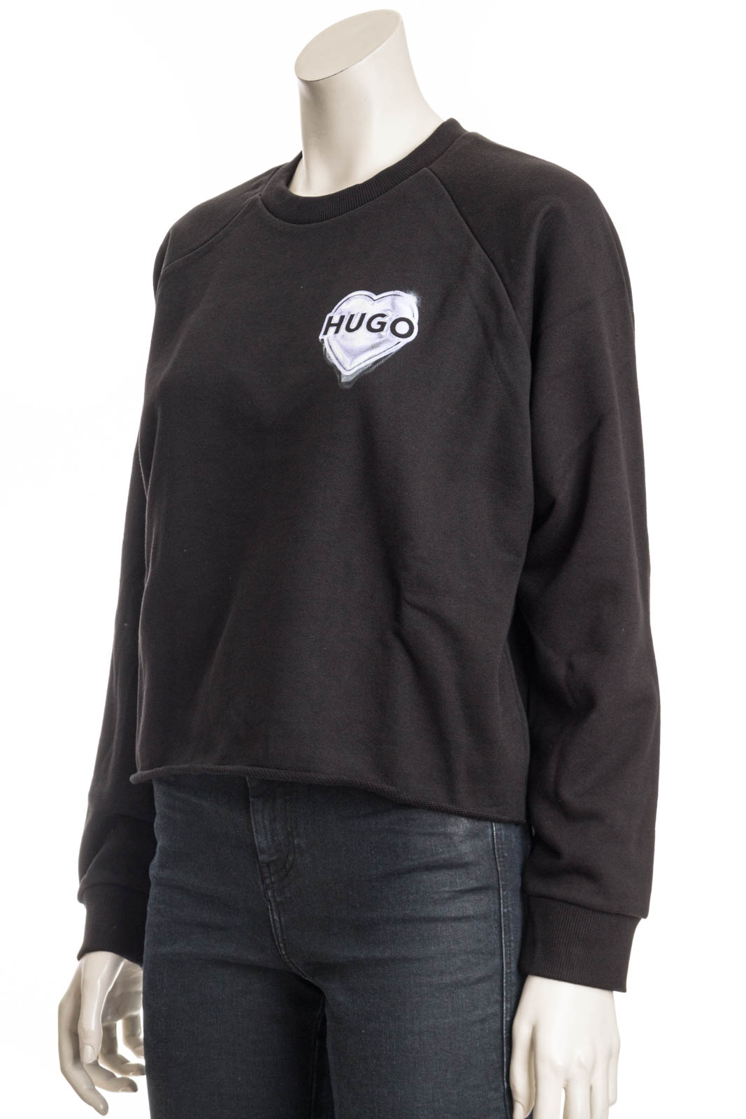 HUGO Womenswear Sweatshirt aus softem Baumwoll-Terry mit unversäuberten Säumen. Der Layer hat eine entspannte Passform und ist mit einem charakteristischen Logo-Print versehen.